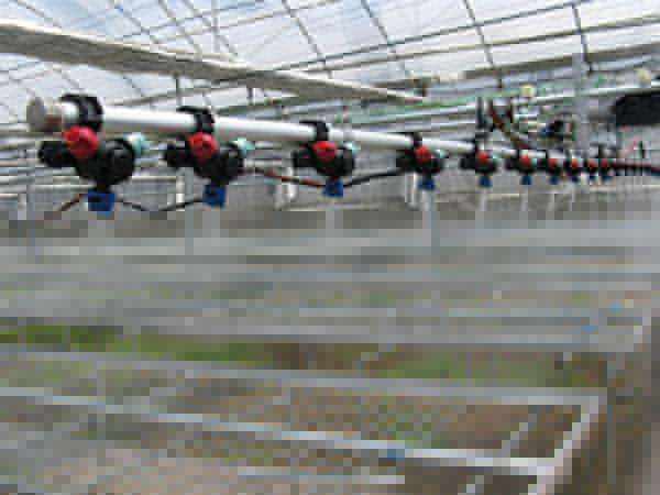將有壓水流通過噴頭噴射到空中,呈雨滴狀散落在田間及農作物上的農田灌溉設備。其灌溉用水可經水泵增壓,也可利用高水位水源的自然落差。用水泵增壓的噴灌設備包括動力機、水泵、輸水管道和噴頭等部分;利用自然落差的噴灌設備可不用。
