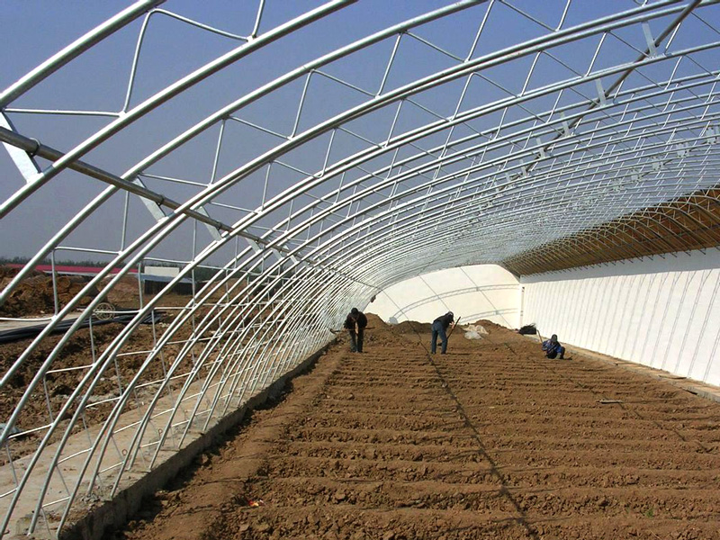 日光溫室是采用較簡易的設(shè)施,充分利用太陽能,在寒冷地區(qū)一般不加溫進(jìn)行蔬菜越冬栽培,日光溫室的結(jié)構(gòu)各地不盡相同,分類方法也比較多。按墻體材料分主要有干打壘土溫室,磚石結(jié)構(gòu)溫室,復(fù)合結(jié)構(gòu)溫室等。按后屋面長度分,有長后坡溫室和短后坡溫室;按前屋面形式分,有二折式,三折式、拱圓式、微拱式等。按結(jié)構(gòu)分,有竹木結(jié)構(gòu)、鋼木結(jié)構(gòu)、鋼筋混凝土結(jié)構(gòu)、全鋼結(jié)構(gòu)、全鋼筋混凝土結(jié)構(gòu)、懸索結(jié)構(gòu),熱鍍鋅鋼管裝配結(jié)構(gòu)。